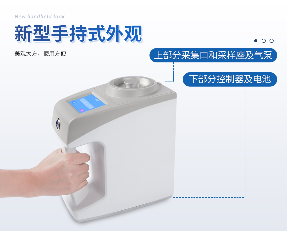 ●新型手持式外觀,美觀大方,使用方便。 ●彩色觸屏控制,操作更加**快捷。 ●LCD顯示采樣量,采樣時間等參數。 ●可將采樣量,采樣時間等參數按組儲存。 ●更換培養皿簡便,拿下采樣口即可更換培養皿。 ●帶熱敏打印機,方便打印數據。 ●帶上位機軟件,數據可導出電腦,方便歷史分析。 ●交直流兩用,內置6000mAh大容量鋰電池,可連續采樣8小時。 ●程序支持中文或英文。