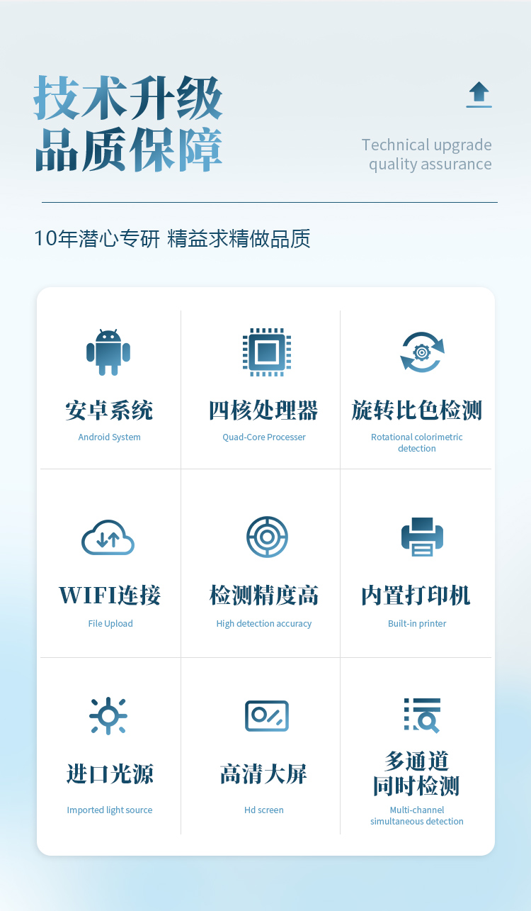 *儀器采用精密旋轉比色池設計,使用光源一致,可以解決各通道間由于光源誤差帶來的檢測結果誤差問題,檢測結果更加精準。