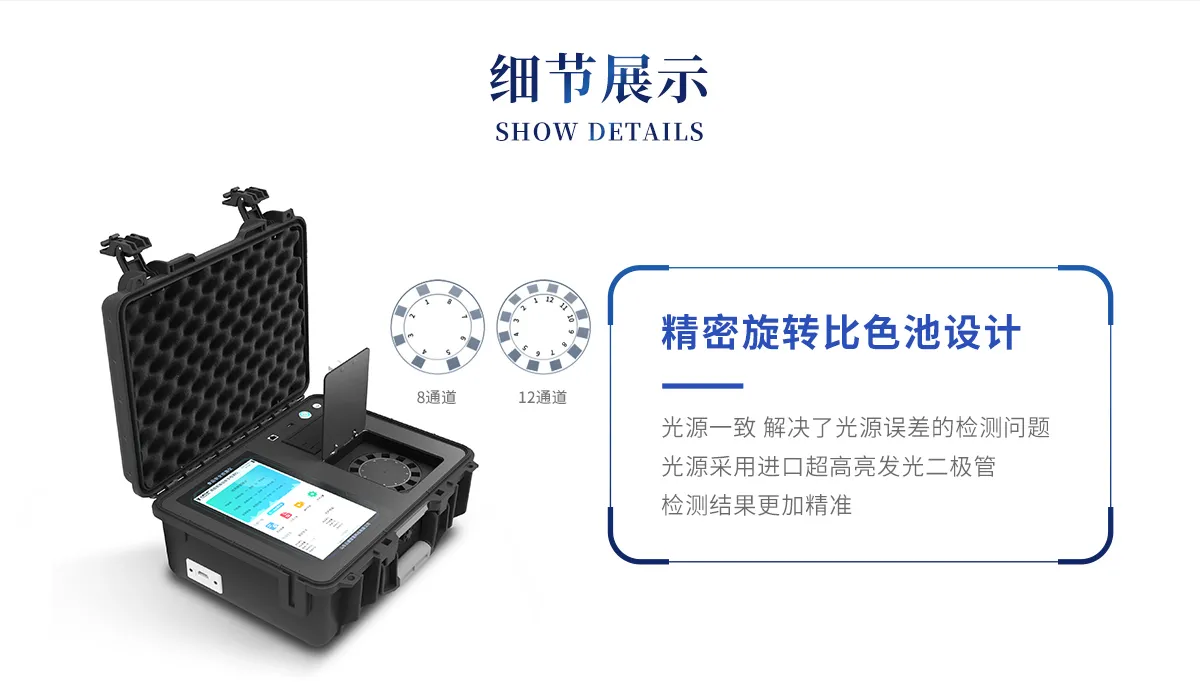 *①儀器采用精密旋轉(zhuǎn)比色池設(shè)計(jì),使用光源一致,可以解決各通道間由于光源誤差帶來(lái)的檢測(cè)結(jié)果誤差問(wèn)題,檢測(cè)結(jié)果更加精準(zhǔn),1-12通道間誤差千分之一。