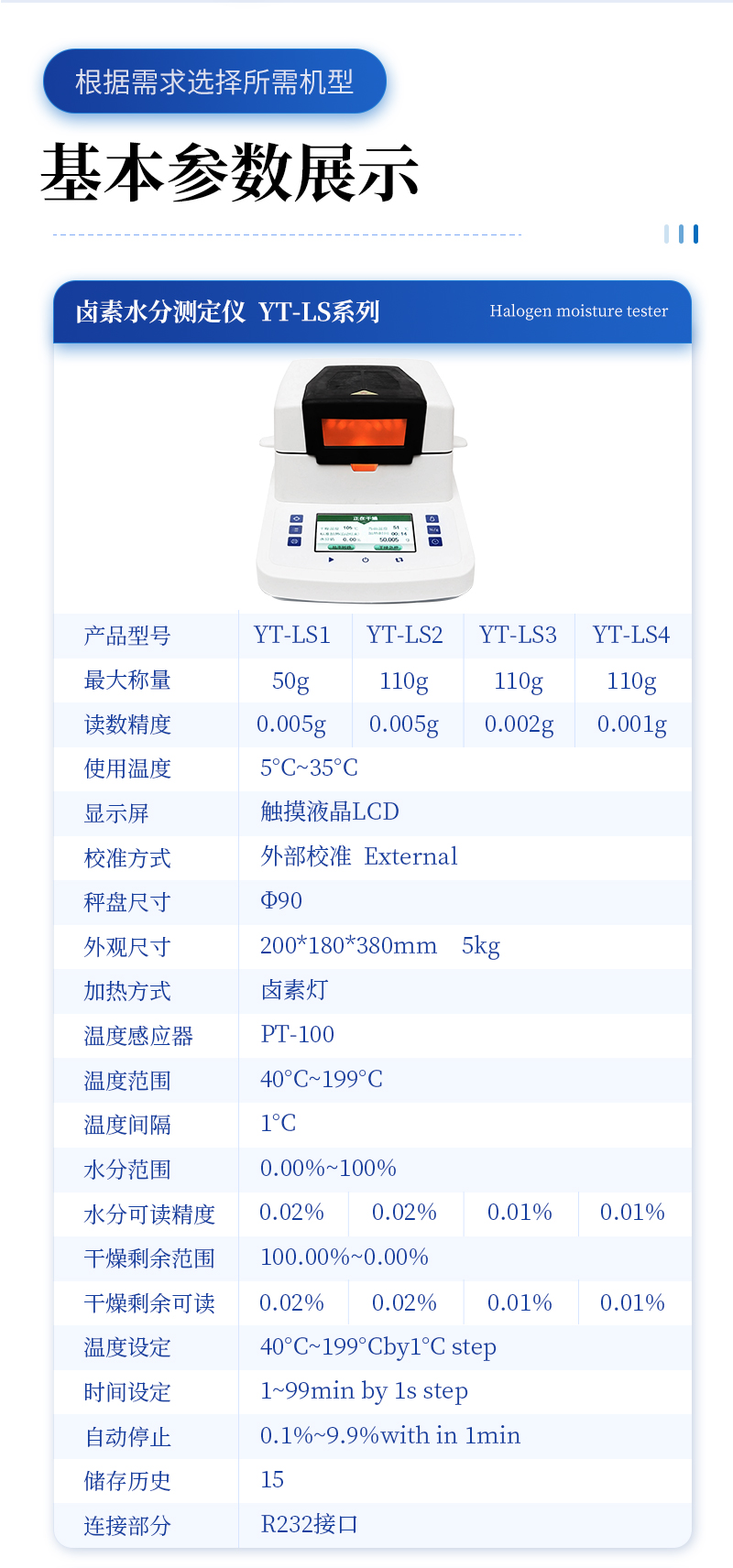 先咨詢優惠福利,再購買,價格更便宜,更實惠。 在線咨詢 技術問題鹵素水分測定儀是我公司新研制的新型快速水分檢測儀器。鹵素水分測定儀采用國際***的稱重系統【電磁平衡傳感器】。其特點是稱量準確可靠、顯示快速清晰并且具有自動檢測系統、簡便的自動校準裝置以及超載保護等裝置。是一種新型快速的水分檢測儀器。