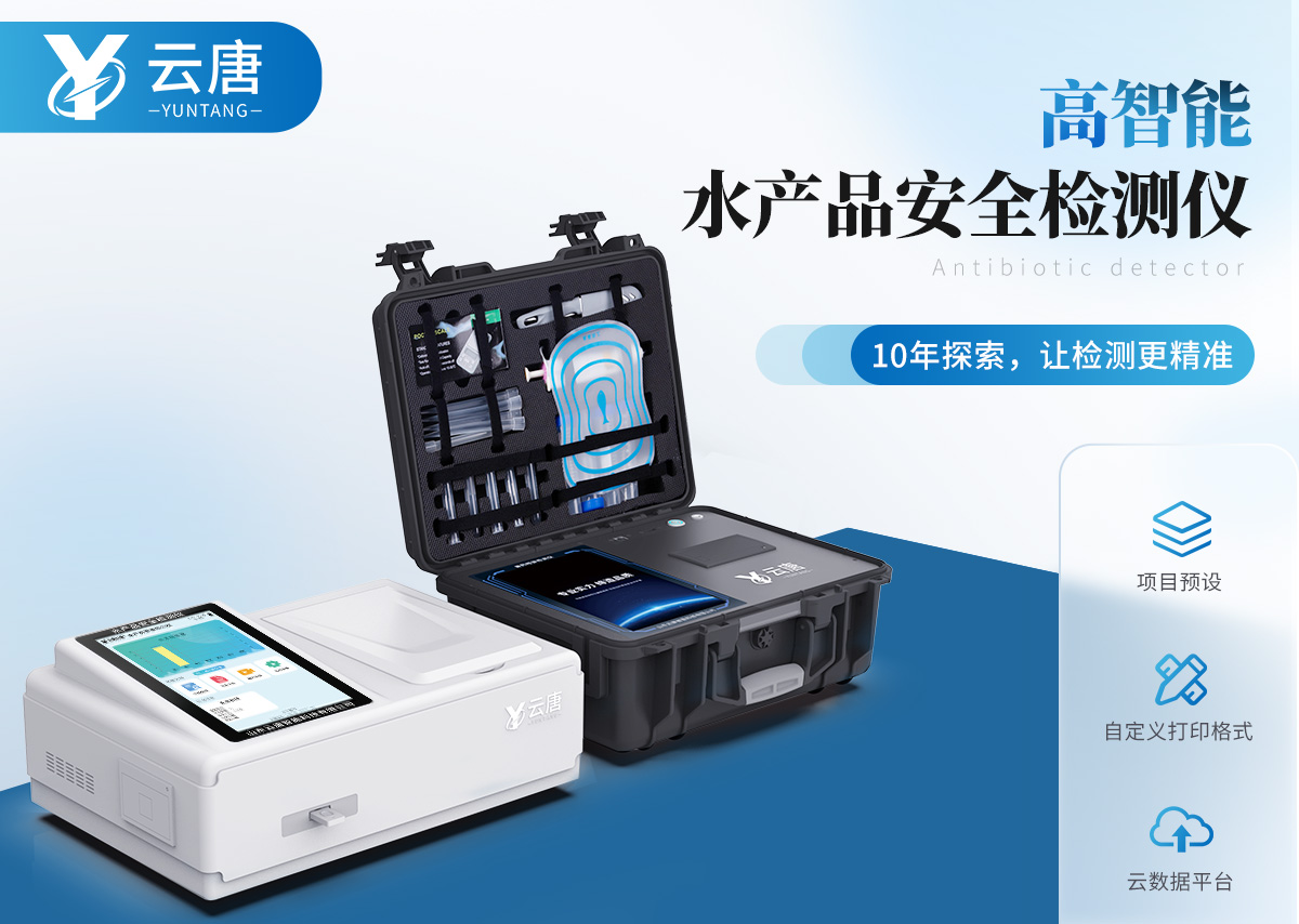 山東云唐智能科技有限公司生產(chǎn)的水產(chǎn)品安全檢測(cè)儀可適用于魚(yú)、蝦等水產(chǎn)中孔雀石綠、氯霉素、硝基呋喃類(lèi):呋喃唑酮(AOZ)、呋喃它酮··· 熱線:133-7109-8225