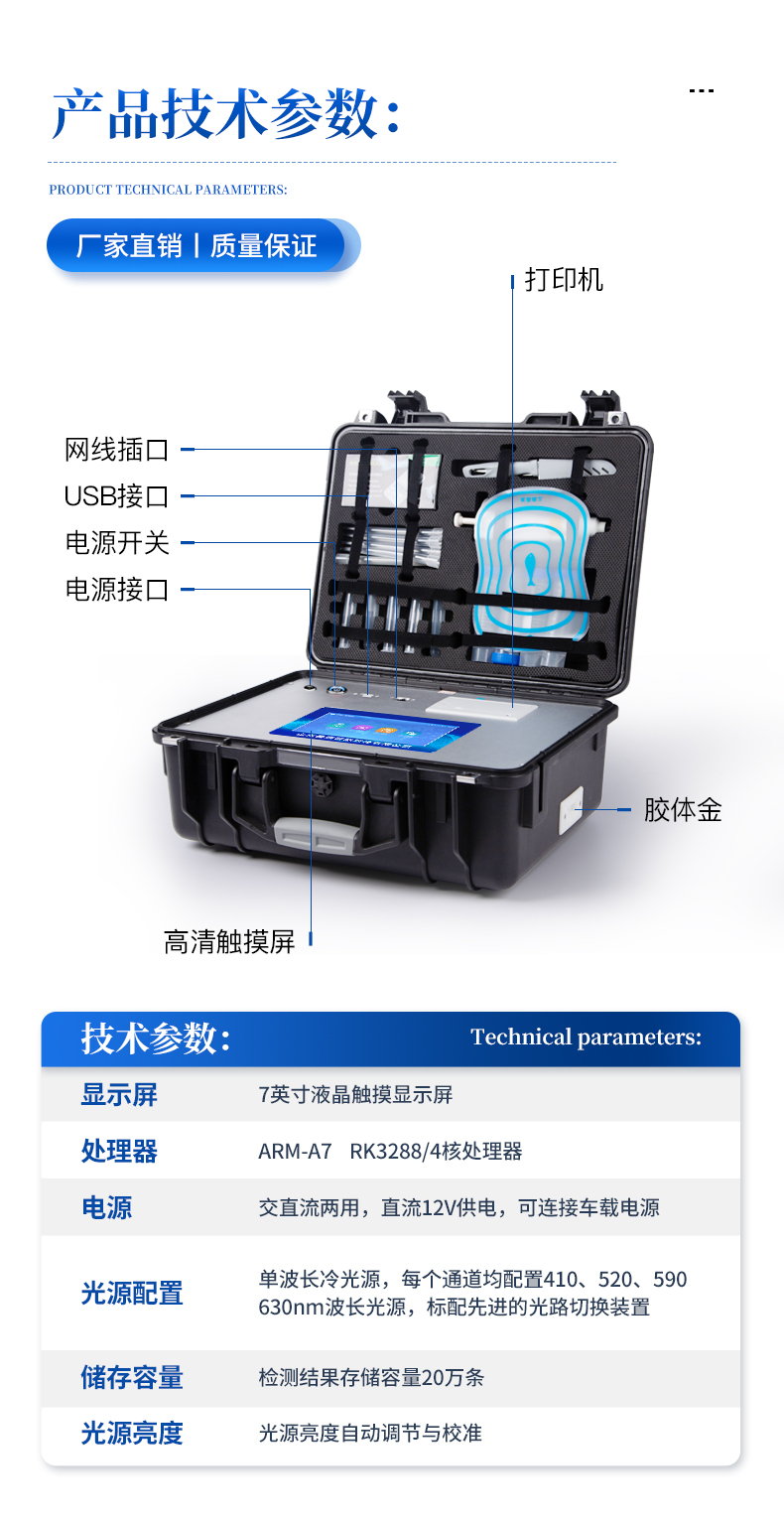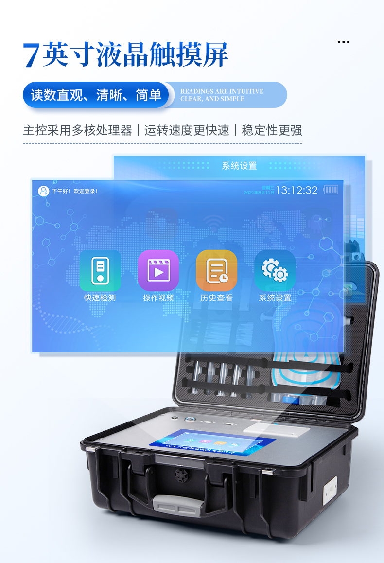 6、一體化便攜式快檢設備,滿足現場及流動檢測使用需求,能夠在同一軟件下實現所有檢測項目的檢測,并可通過同一窗口直觀顯示檢測結果。