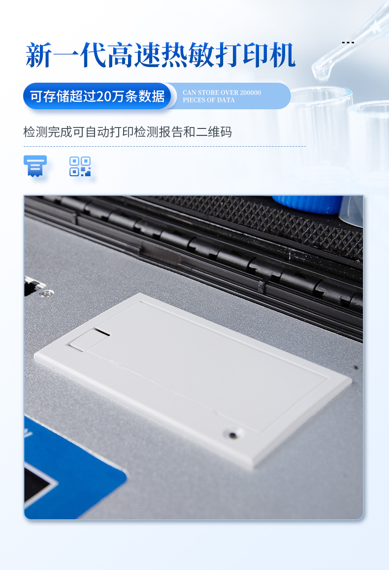 3、新一代高速熱敏打印機,檢測完成可自動打印檢測報告和二維碼。